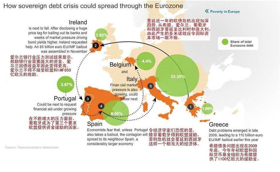 欧债危机已经成为当今影响欧洲经济的最大的困扰,先是希腊政府面临破产,接着是爱尔兰、葡萄牙、西班牙、意大利。很多经济学家、政治家都在探讨欧债危机的形成原因以及解决方案,目前大家公认的原因大概有这几个:金融危机中政府加杠杆化使债务负担加重;评级机构煽风点火,助推危机蔓延。这是外因。产业结构不平衡——实体经济空心化,经济发展脆弱;人口结构不平衡——逐步进入老龄化;刚性的社会福利制度。这是内因。这些探讨大都还停留在经济本身和政策层面,这些无疑是非常明显的原因,也是直接导致希腊、西班牙、意大利等国家债务危机的直接原因,但是经济和政策背后的深层原因却一直没有得到足够的重视。