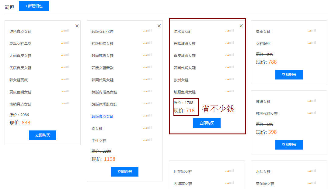 另外还有词包,相当于将几个词打包做标王,且在原来基础上打折。
