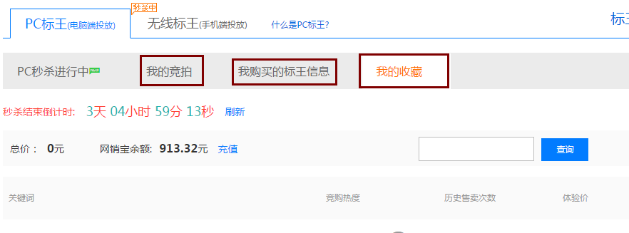 现在标王分为2大块:一是PC端标王(在电脑端投放),二是无线标王(相对来说便宜些)!