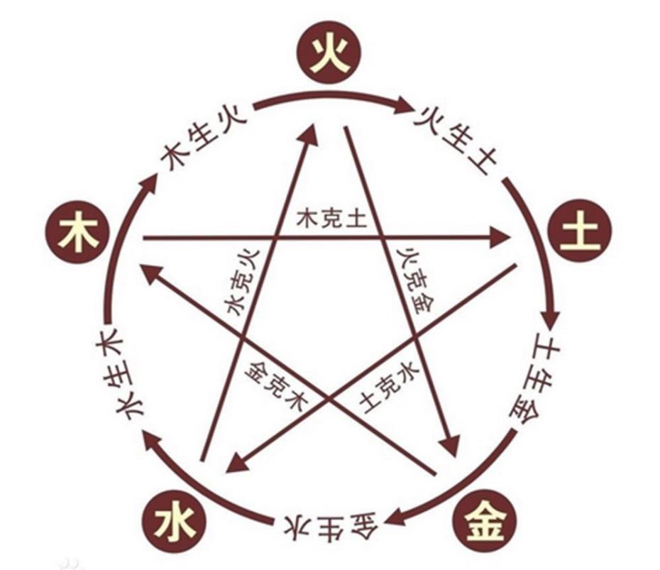 五行相生:木生火——火生土——土生金——金生水——水生木,变成一个循环。