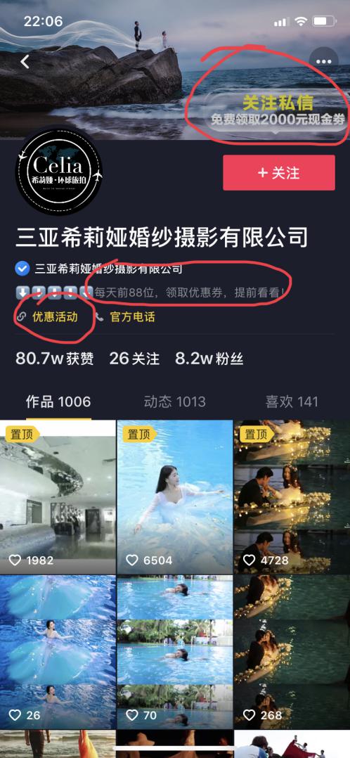 开通蓝V之后,就具备了外链跳转和联系电话功能。外链跳转可以直接跳转到公司的官网或者H5。如图4-20企业账号的“优惠活动”,就是外链。