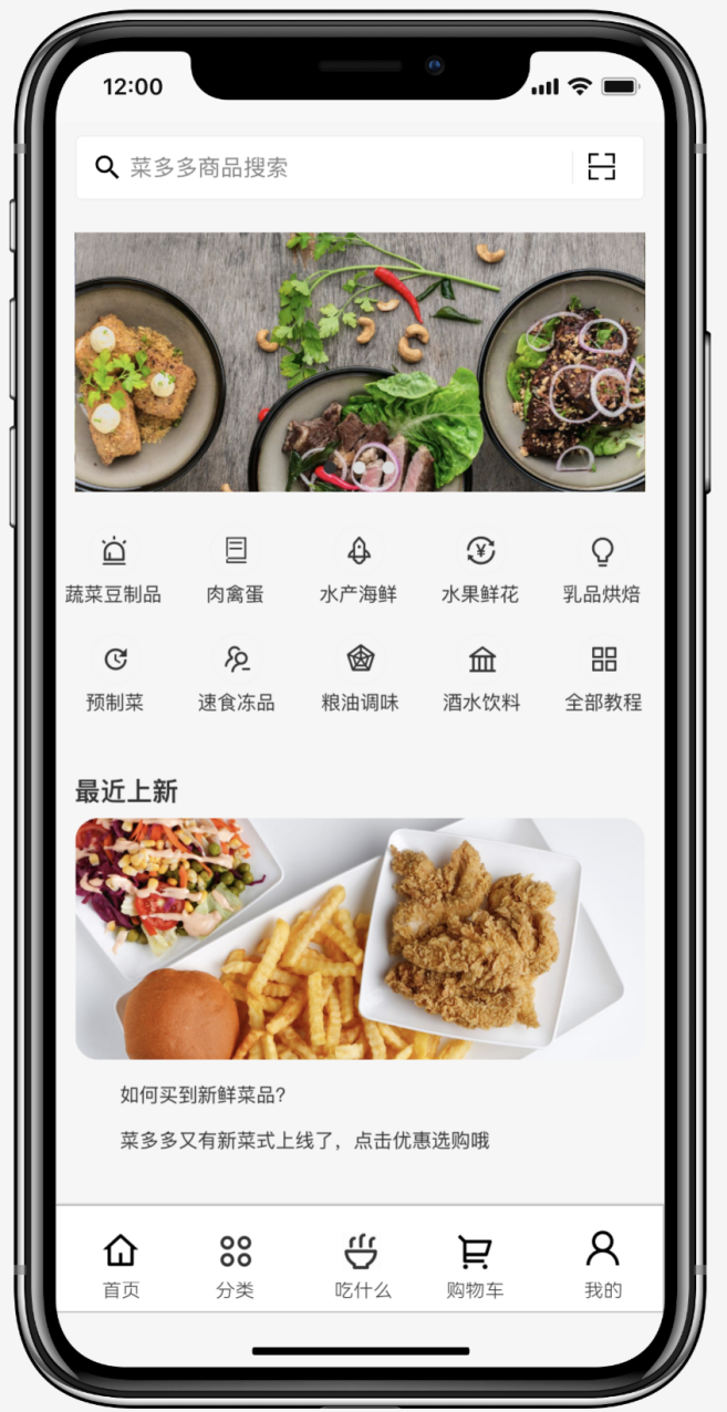 大家一定要记得,交付物的概念不仅是可见的产出,还可以包含一些特定的产出,如服务能力、管理机制等。从可交付物的角度来看看“菜多多”App的最终文安效果,无论从菜单布局、背景、配图,还是图标、字体、颜色等方面,是不是有种“大片”的既视感。