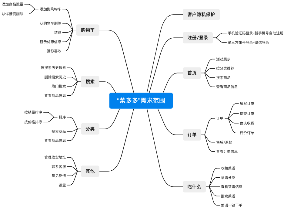 图5-5 “菜多多”的需求范围WBS分解{与图4-2重复}