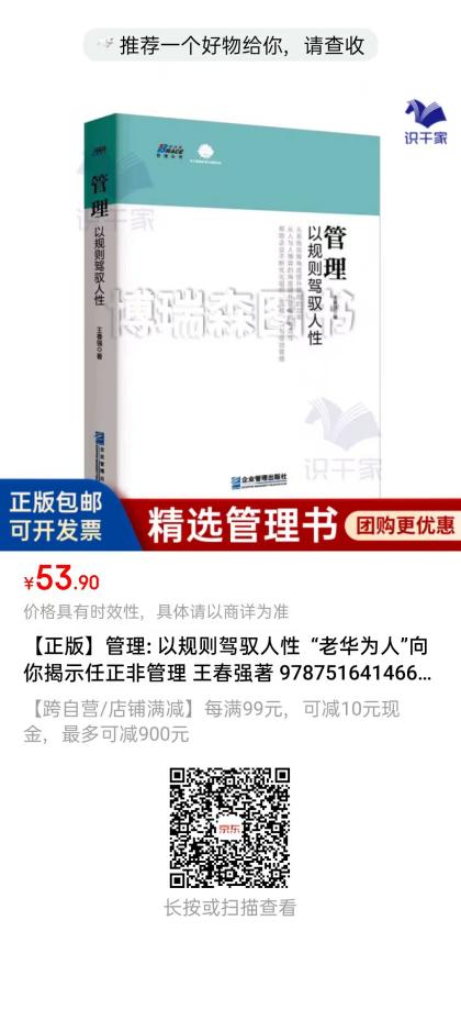 本次直播中,王春强老师的观点多源自其丰富的研究与实践,这些内容在他的著作中也有深入呈现。比如《打造集成供应链:走出挂一漏十的改善困境》详细阐述了集成供应链相关内容,能帮助读者深入理解企业供应链管理中的集成理念与实践;《管理:以规则驾驭人性》将管理理论与人性相结合,让读者明白如何在管理中更好地把握人性因素,提升管理效果;《不读韩非子,怎么当老板》则从古代智慧中汲取管理灵感,为管理者提供独特的管理视角。这些书籍对于想要深入学习管理知识、探索企业管理底层逻辑的读者来说,是不可多得的佳作,值得一读。