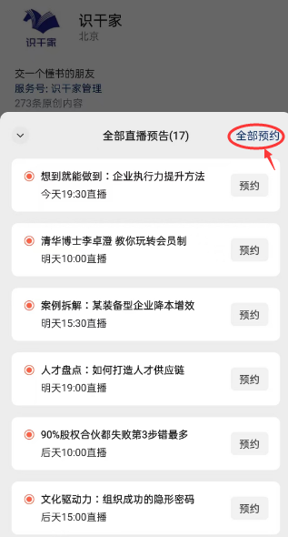 一键预约全部直播