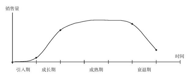 任何一项成功的产品都会经历从开发期经商品化而进入市场,为市场所接受,经过成长、成熟和衰退以至最终退出市场的过程。产品的生命周期就是指产品从投入市场至退出市场的全过程,它反映了一个特定市场对某一特定产品的需求随时间变化的规律。产品生命周期一般分为四个阶段:引入期、成长期、成熟期和衰退期,如图18-6所示。