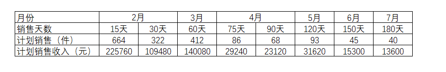 根据这个计划,柏瑞丽公司转化成每一个时间点的预计销售收入。当然实际上每个月份天数并非一致,为了便于计算,一律以30天视为一个月。这些价格均以吊牌价作为计算金额依据,当上架的第15天,其销售收入预计为225760 元。