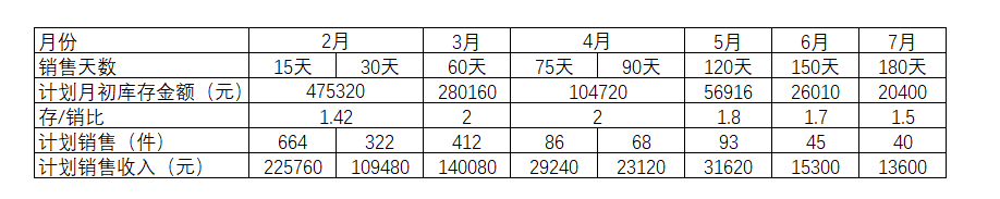 通过初始月初库存金额和预计销售收入,计算出2月的存销比。
