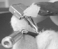 (2)分离注塑外模时应先从注塑头开始剥离(图2),再慢慢往下剥;当剥到能看到内模时应注意不要剪伤到芯、地线,再分离铜箔、卸地线(图3)。