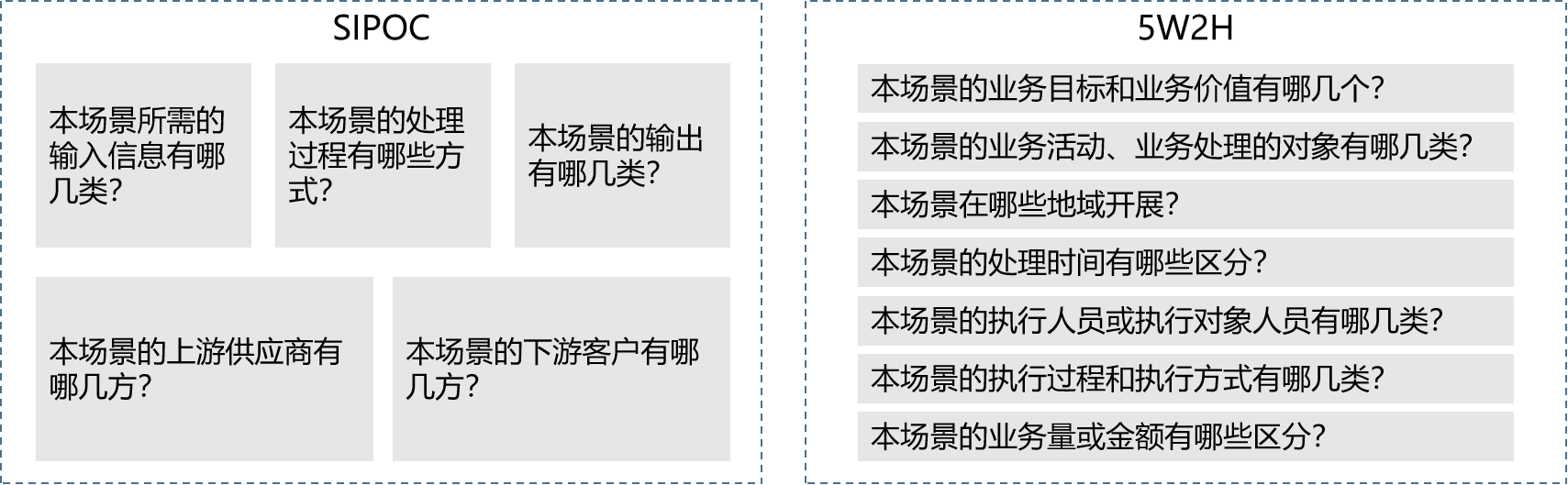 图3.13 SIPOC和5W2H方法分析场景因子举例