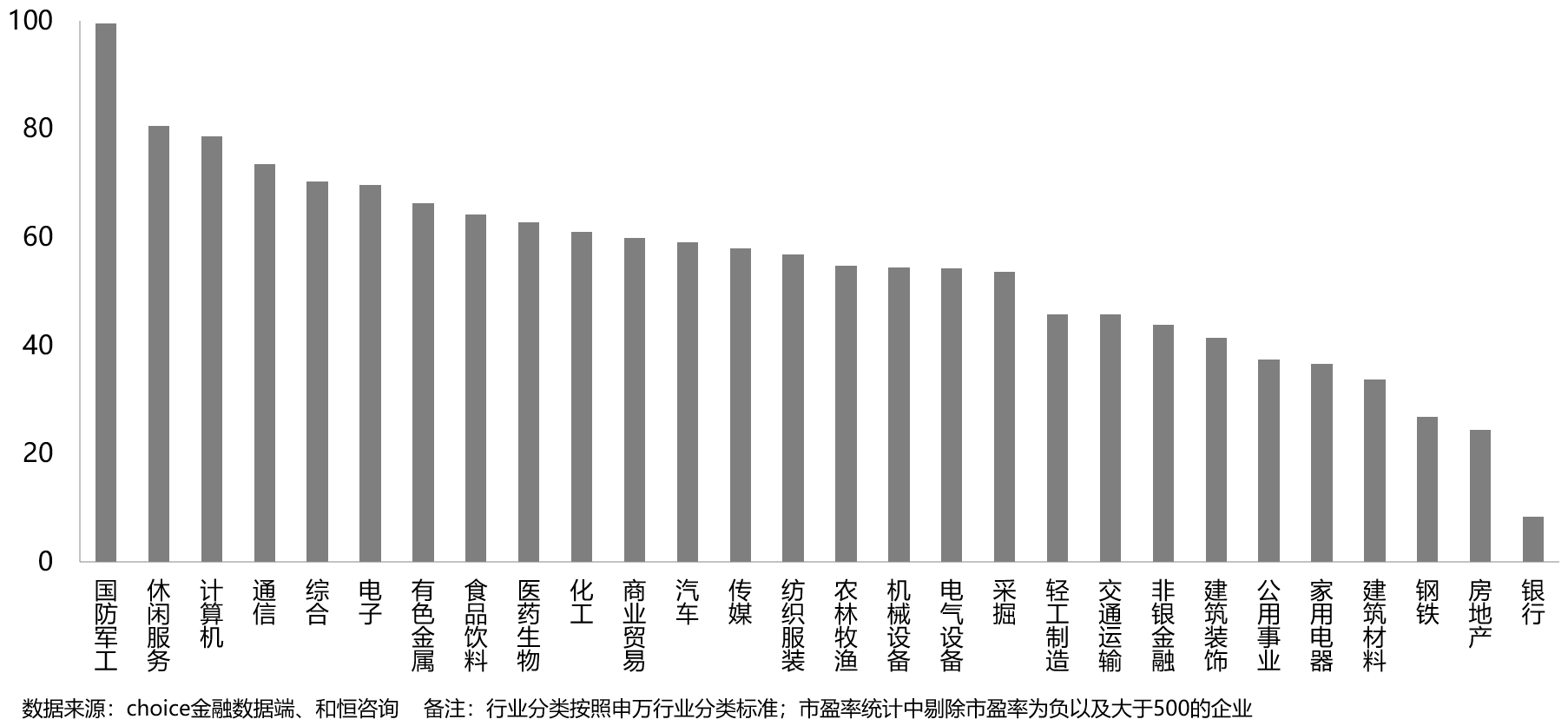 图2-4 2020年各行业市盈率对比