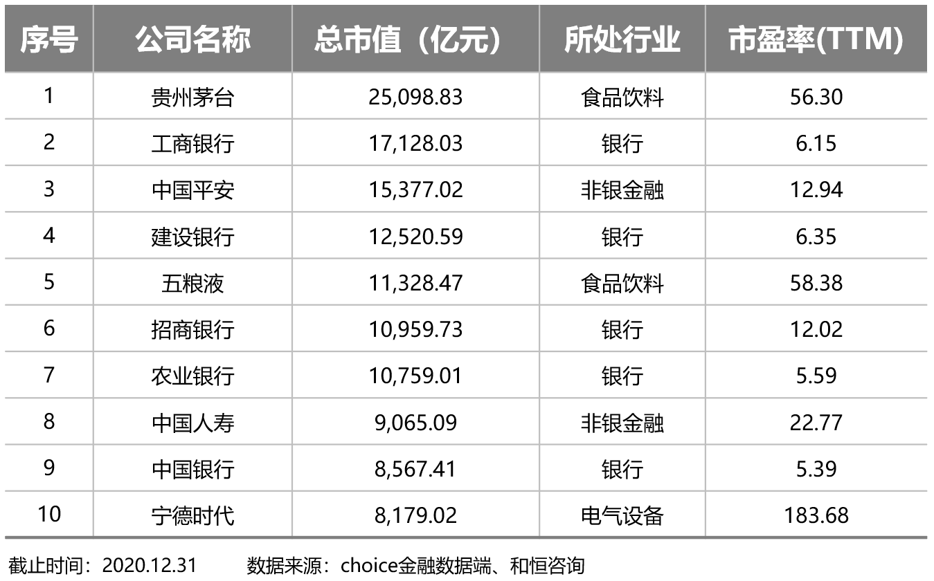 表2-1 2020年总市值前十大企业的市盈率
