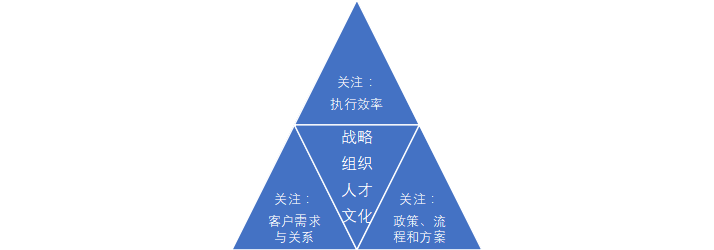 HR三角交付模式同样描述了HR的三个主要角色:业务伙伴、HR专家和落地执行者。