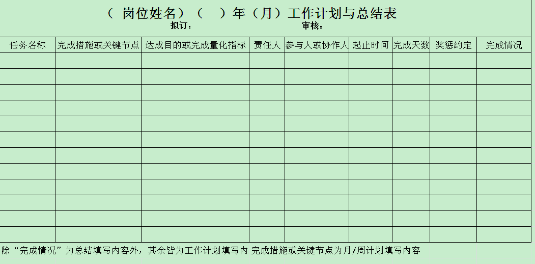 10.​ 工作总结与计划事项对等(在计划表中增加“完成情况”),凡计划事项必须在总结中体现完成情况,未完成事项必须分析说明原因,制定改善措施,并列入下一阶段工作计划。