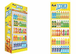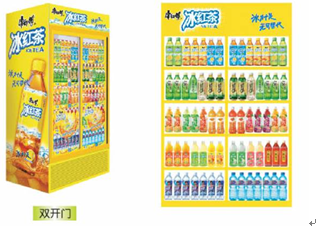 陈列方式:同品牌垂直陈列,从上到下,由轻到重,同包装水平陈列;遵循先进先出原则;新产品、新包装产品应陈列在冰箱的最佳位置,即靠近冰箱把手的位置,配合新产品的推广。