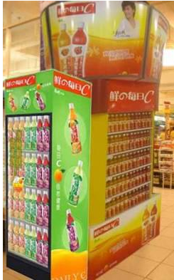 位置选择:选择人流量大、抢眼的位置陈列产品,如入口主通道、饮料货架区、冷柜区和收银区的立柱。