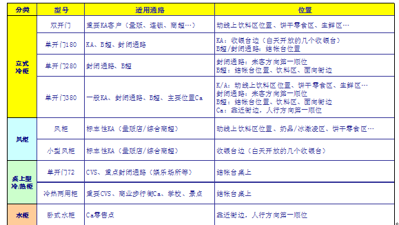 位置选择:冰箱陈列应选择售点入口、扶梯口、收银区、食品区、冷藏食品区等人流量大的位置。