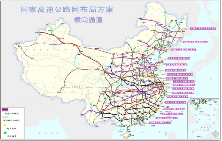 下面两张图是国家高速公路“五纵七横”规划图,这就是公路网络的主干线。这几个主干线设计、建设、管理的好坏,直接影响全国物流、人流、商流、信息流的整体结构性效率。大家要注意,这个规划的核心是着眼于全国物流效率,而非关注某一个省市的物流效率。