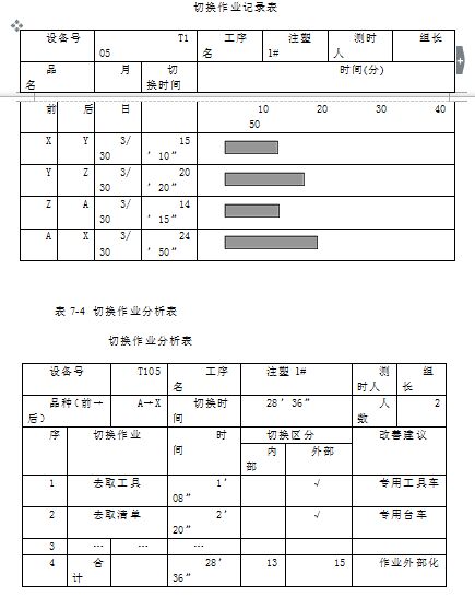 以上四类,内容虽然不同,但是造成生产停顿的结果却是一样的。虽然近几年国内有些企业管理者已认识对第一种形态“换模作业切换动作”的改善,但忽略了其他三种形态的改善,实为可惜。其实后三者形态的改善不但较容易做得到,而且节省的切换时间也十分可观。