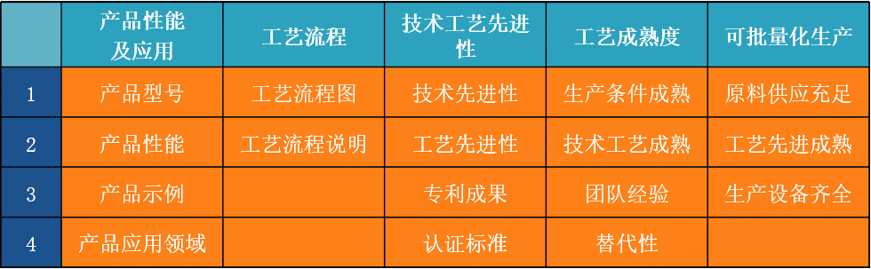 技术可行性分析,我们一般通过表2-8几个维度进行研究:募投项目的产品性能及应用、技术工艺流程、技术工艺的先进性、成熟度分析、可批量化生产。