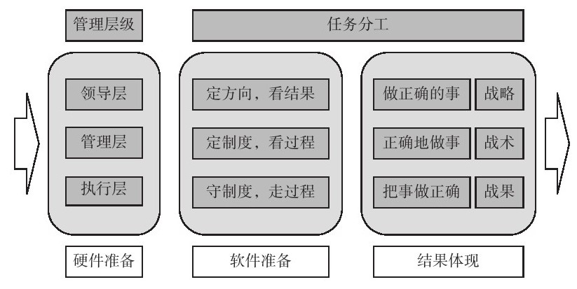 (3)方针是方向,方针是用来凝聚人才的。方向错了,越努力错得越多,损失更大。所以方针比行动重要,选择比努力重要。一个企业成立时就要确定公司的质量方针、经营理念、愿景、价值观,下面的员工做事才有方向,才能不越过公司规定的红线。整个公司的员工齐心协力,企业才能在市场竞争中取胜。有些人很努力,但没什么成绩,第一是方向选择错误,第二是能力不够。公司高层领导一定要把主要时间放在制定战略方针,提升管理理念,树立企业价值观上,不能越俎代庖,有些主管做的事高层领导做了,下面的主管就容易懈怠,所以高层领导一定要清楚自己的职责范围。