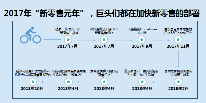 从“新零售元年”2017年开始,巨头们都在加快新零售的部署。一方面改造现有门店,增加面积、丰富业态,另一方面部署用于改善顾客体验的工具,比如3D效果图的设计等。更普遍的是,线上线下O2O协同作战几乎成为一二线品牌的标配,只不过策略水平与效果大小有差别。