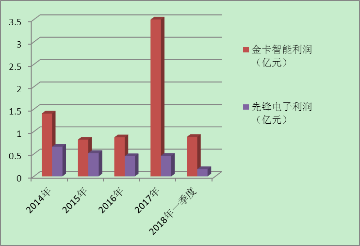 图9-4 金卡智能与先锋电子近年利润比较图