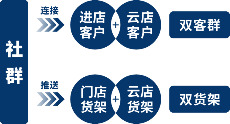 进店客户+云店客户,这是“双客群“。连接双客群的是社群。