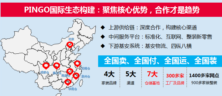 1.组织架构上:PINGO大家居生态经济体三架马车齐头并进!(1)PINGO集团,负责投资、融资金融;(2)瑞美嘉集团负责线下公司(渠道)管理;(3)艺可集团,负责供应链运营,由独立公司而不是作为公司的项目组或部门。