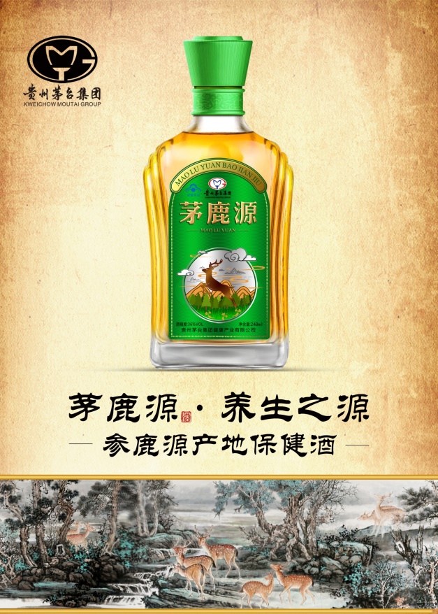 茅鹿源,一个极具生态烙印的品牌名称。这个名称是“贵州茅台集团与辽宁西丰”的一次茅鹿传奇的邂逅。贵州茅台集团作为中国最大的酱香型白酒企业,世界最大的蒸馏酒企业享誉世界、驰名中外;西丰,作为全球最大“鹿产品交易基地”,是鹿产品原产地保护区域。一次茅鹿传奇的邂逅,创造了“茅鹿源”保健酒品牌。茅鹿源保健酒就是“一瓶好酒+一个好配方+一只鹿+一个好生态”的完美融合,它凝练成一杯“晶莹剔透琥珀金黄”的生态美酒。茅鹿源,一个新品类——“参鹿源产地保健酒”正在引领行业发展。如图2-3所示。