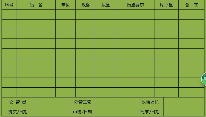 (2)每月25日前,技术部根据各牧场《饲料申购单》,结合饲料配方等综合因素,汇成《各牧场饲料用量计划表》,报牧业公司总经理审批。