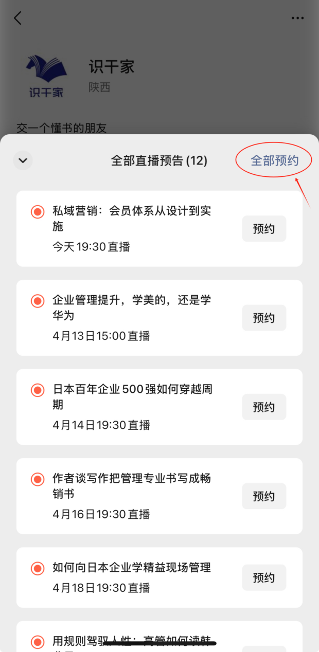 一键预约全部直播