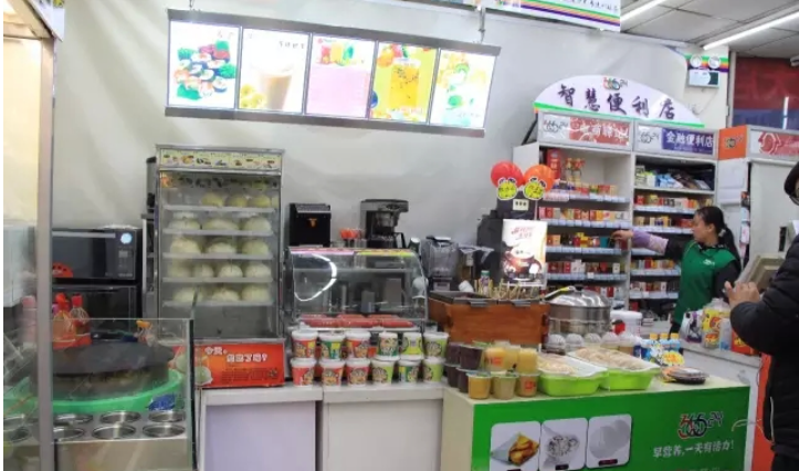很难想象70平方米大小,32个货架上陈列着2000余单品,客流量一天高达700人次,客单价15元,单店日销售额1万元左右……一系列数据在这个没有高档的陈设,没有过高的“颜值”的店中稳定增长。其经营理念是“强化速食餐饮”,不断开发新产品。在生活服务领域,国大36524便利店不仅为消费者提供丰富可口的早餐,创新性地加入“随到随吃”“班后餐桌”两个概念。可以说,国大是河北目前算得上成功的社区便利店品牌,正按照“未来商店”的方向高速成长;早餐速食快餐、日用品、水电费缴纳等,国大的商业模式也值得很多连锁便利店认真研习。如图1-7所示。