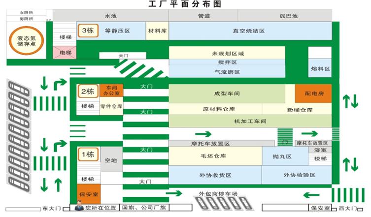 此目视整个工厂布局图选择挂在进公司就能看到的位置,尺寸大小视工厂规模而决定,材料尽量使用户外广告材料,必须耐热耐湿,防板变形。