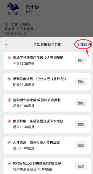 一键预约全部直播
