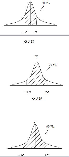 如图5-19阴影部分所示,以平均值X 中心,数据在X±2σ范围内出现的概率为95.5%。