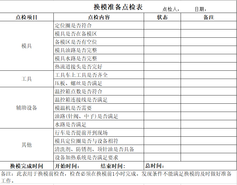 设备在换模的时候,事先做出计划表,让机修进行协助