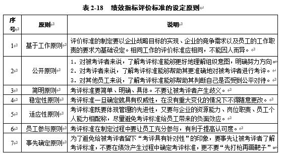 表2-18 绩效指标评价标准的设定原则