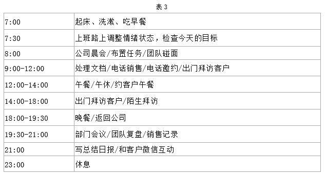 在组织和企业的管理当中,流程无处不在:销售有销售的流程,服务有服务的流程,计划有计划的流程,生产有生产的流程,人事有人事的流程,财务有财务的流程,大流程里面有小流程,小流程有机结合构成大流程,实际上,组织和企业的经营管理者大部分的工作就是在做业务流程管理。流程化并不复杂,能易于组织的人员/员工理解和执行的流程就是好的流程,以一个普通销售岗位一天工作生活的流程为例: