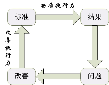 这个管理闭环是一个不断改善优化的循环过程,有标准然后有标准的执行力,执行后就会出现一个结果,根据这个结果可以分析问题,然后做出改善决策,在改善的过程中就是改善的执行力,然后再继续优化,其实这也是一个PDCA的循环。当企业真正打造出这种标准执行力和改善执行力的时候,也就实现了一百分的标准,100%的执行到位。