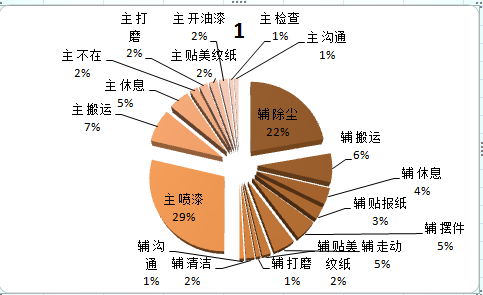 如何对喷漆房能力进行有效测算是企业的难点,首先人与人之间有差异,产品与产品之间有差异。有些企业直接采用零件的涂装面积来衡量工时,但大件/小件/异形件还要给不同的系数调整;而且在配涂作业中,大量作业时间是花费在屏蔽、清理等作业,真正作业时间比例有限。笔者辅导一家企业进行改善时,利用宽放抽样的工具对作业进行了分析。得到各项工作比例。通过实施优化辅助作业工作,提升主工的作业时间比例有效提升了作业量。并对每种产品制定了时间面积和加权面积,开发了周产能平衡分析表。如图6-6所示。