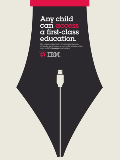 如今,消费者要求企业带来的不仅仅是物质的满足,还包括更健康的地球环境、更幸福的人生。智能星球是IBM的一个战略理念,关注企业、环境、地球和人,通过智能系统来实现经济增长、可持续发展和社会进步。IBM针对智能星球计划设计了一组海报,这组海报运用的手法简洁,从文案到图形,趣味性且有机地将主题与产品(商务解决方案)结合并传达出来,在目不暇接的广告里会突然吸引住观众的眼球,从理念、创意、构图、色彩等方面都值得借鉴。IBM在全球发布最新的广告海报,海报主题围绕着IBM这一全球性的商务解决战略,展开一系列对商务平台的推广活动,并获得了好评。