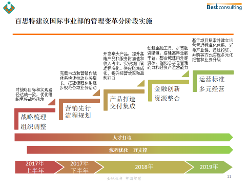 顾问团队进一步细化了项目整体路线,从战略梳理,组织优化,延伸至市场、销售、供应链以及人力资源四大体系构建。
