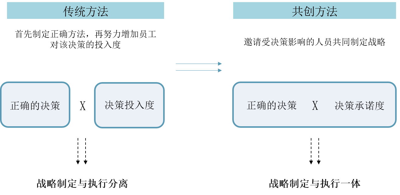 加入企业希望将“共创式战略”导入企业,在初期阶段,可以引进具有丰富引导知识的引导师。经验丰富的专业引导师会带来一系列高度结构化的流程,帮助企业创建战略规划框架;此外,专业引导师还掌握了众多的工具和技巧来适应企业的团队。专业引导师能够帮助参会人员作为一个团队出色的完成以下工作:聚焦关键问题、构建共同愿景、做出实现这一愿景的行动承诺。但是成熟之后,具有丰富行业知识的企业首席战略引导师一定是首席战略官。