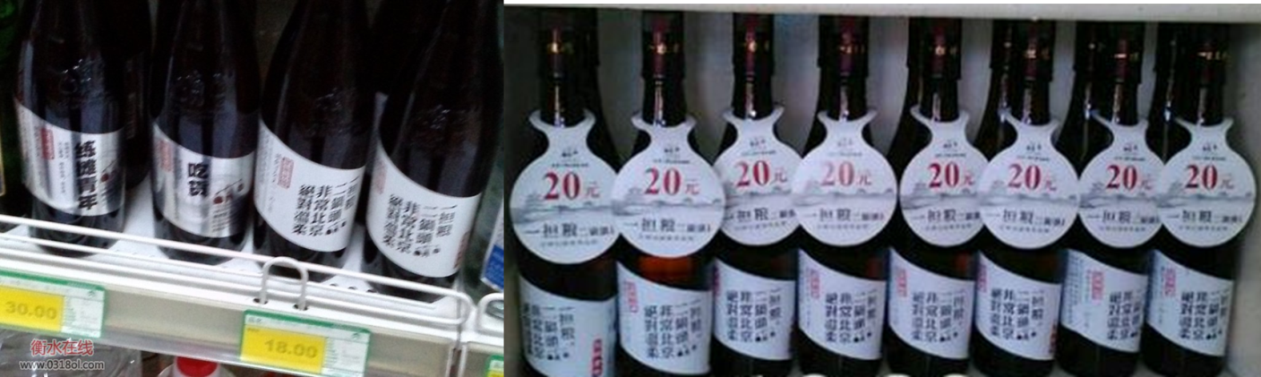 一担粮利用北京二锅头酒业有限公司的渠道优势,集中北京市场向周边市场布局运作,采取“先餐饮,后流通”的渠道策略。目前在华北大部分城市的餐饮渠道都能看到其促销物料与产品陈列,尤其是将产品陈列做到了极致。而一担粮在促销品的运用上,也由原来东北光瓶酒用过的锅碗瓢盆升级为家用电器,紧跟时代的潮流。同时,一担粮在餐饮渠道选择上坚持先介入后整顿的原则,不单单运作C/D类以下餐饮店,就连高档的A/B类核心终端也全部覆盖,在渠道操作上感觉是又一批“黑马”来了,在某种程度上超越了东北酒目前的渠道运作状态。如图5-26所示。