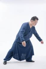 金鸡独立在身形上的重点得留意。第一,不要用手肘来迎合抬起的膝盖,而是以膝盖来迎合手肘,这点大多数人都忽略,务必谨记在心。第二,成定势时务必中指微微翘起,能坐腕更好,这才能有助劳宫穴行炁。第三,抬起的大腿要跟地面平行,脚踝也要放松,让脚盘自然下垂,别用力吊着脚踝,否则炁会卡住上下不得。第四,要求自己依照太极基准八法的要领来反复操练金鸡独立。