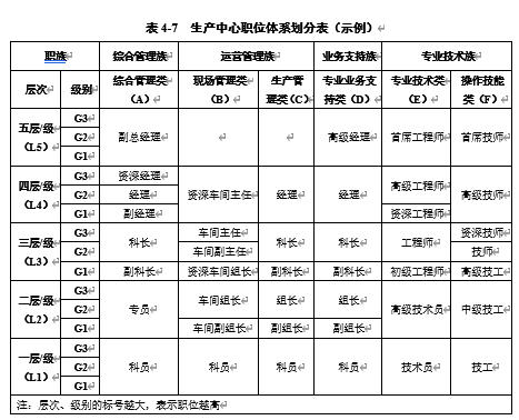 表4-7 生产中心职位体系划分表(示例)