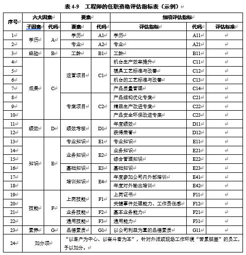 表4-8 任职资格评估要素指标表(示例)