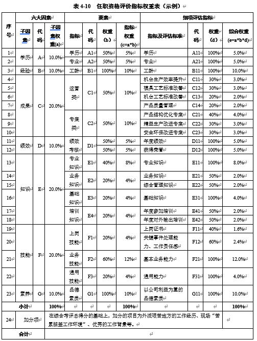表4-10 任职资格评价指标权重表(示例)