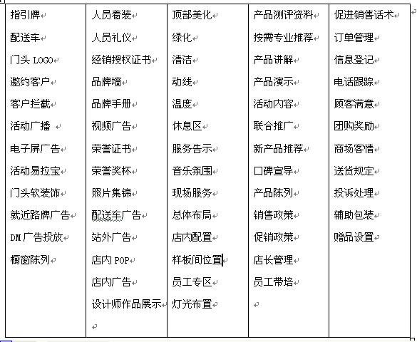 二是结合实际情况,项目组必须“落地”,到一线去,围绕品牌展示、终端广告、陈列、推广、导购、培训、店面运营管理、服务8大系统,整合资源,从“大战略”与“小细节”上融会贯通。